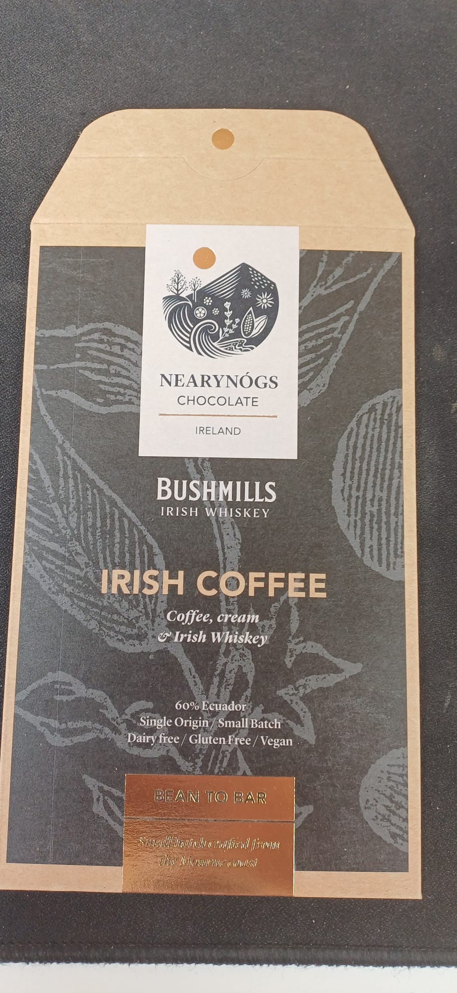 Our spin on the traditional classic Irish coffee in a chocolate bar! Crafted with Ecuador cacao in a 60% base, we added in Irish whiskey from the good folks at Killowen Distillery and some lovely coffee from Brazil, Sao Silvestre that we serve on our chocolate bar here in the cafe from the amazing Bailies Coffee Roasters up in Belfast.